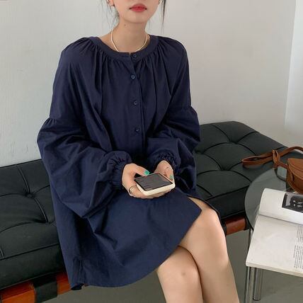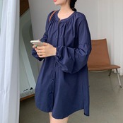 韓国 シャツ ワンピース ルーズフィット ランタンスリーブ [gg-1400]