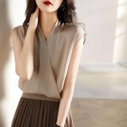 Vネック サテン風 ノースリーブ ブラウス [gg-1408]