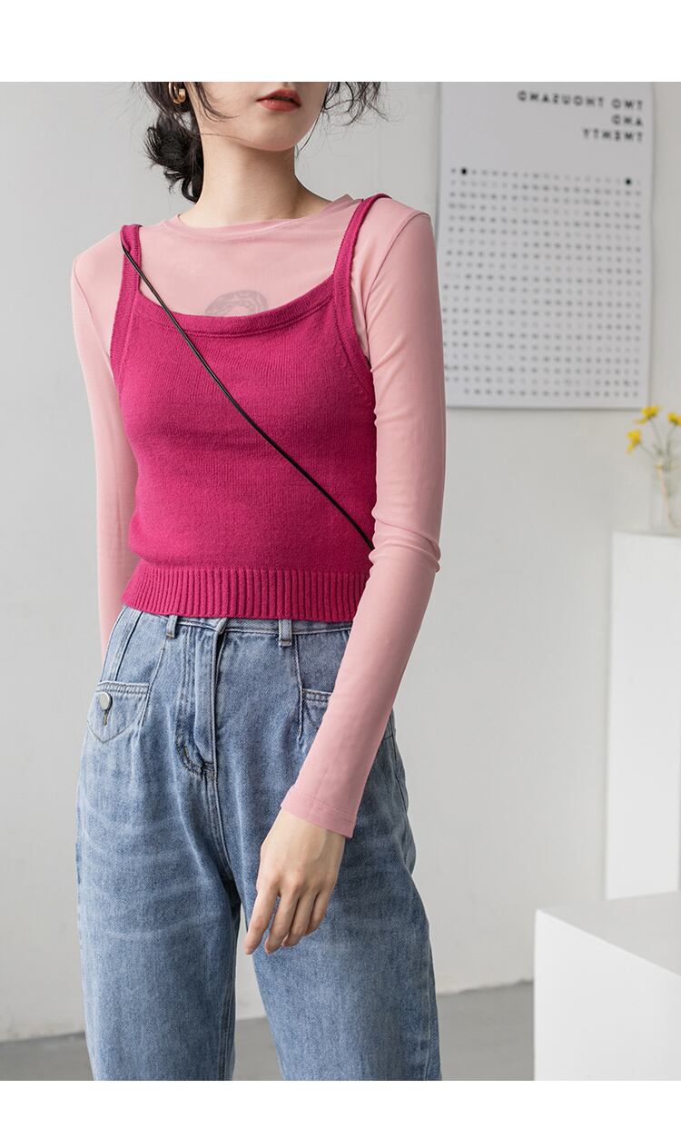 シアー 長袖 トップス クルーネック カラー [gg-1416]