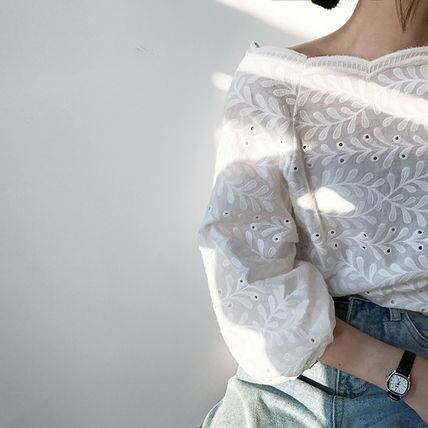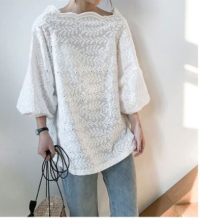 ボートネック ブラウス バルーン袖 レース [gg-1420]
