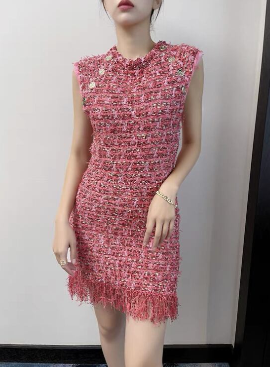ワンピース ツイード ノースリーブ ショート丈 [gg-1433]