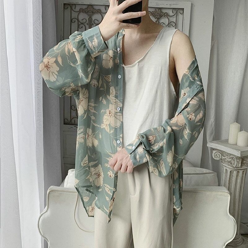 メンズ 花柄 シャツ シースルー カジュアル [gg-1441]