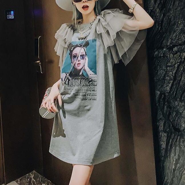 ワンピース チュール袖 フリル ロングカットソー [gg-1444]