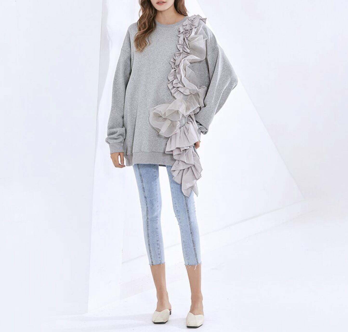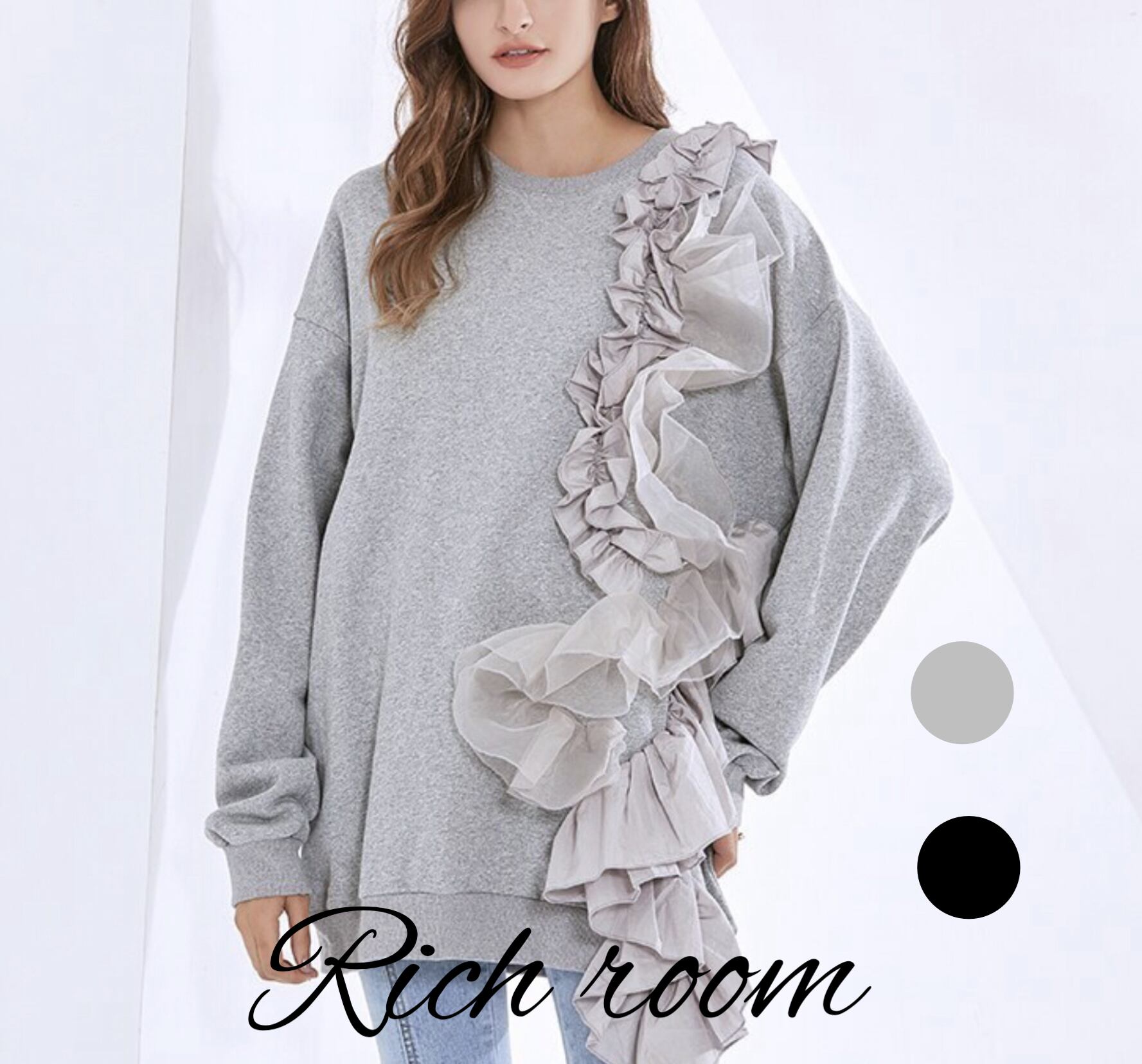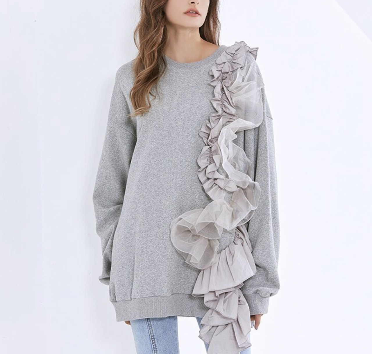 スウェット トップス フリル オーバーサイズ [gg-1459]