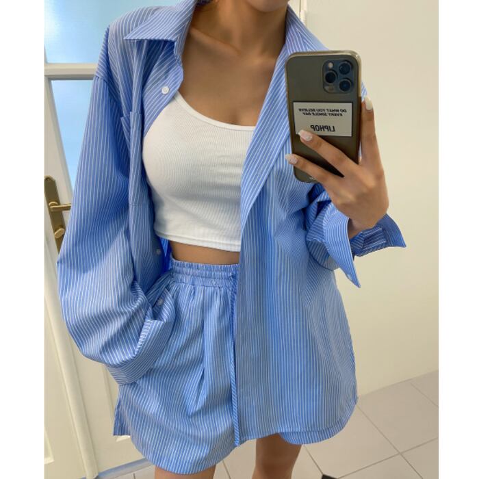 ルーズ ストライプ シャツ×ショーパン SET [gg-1494]