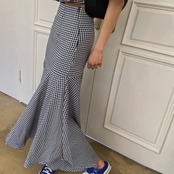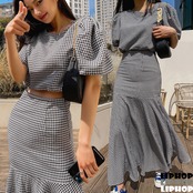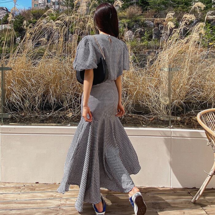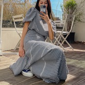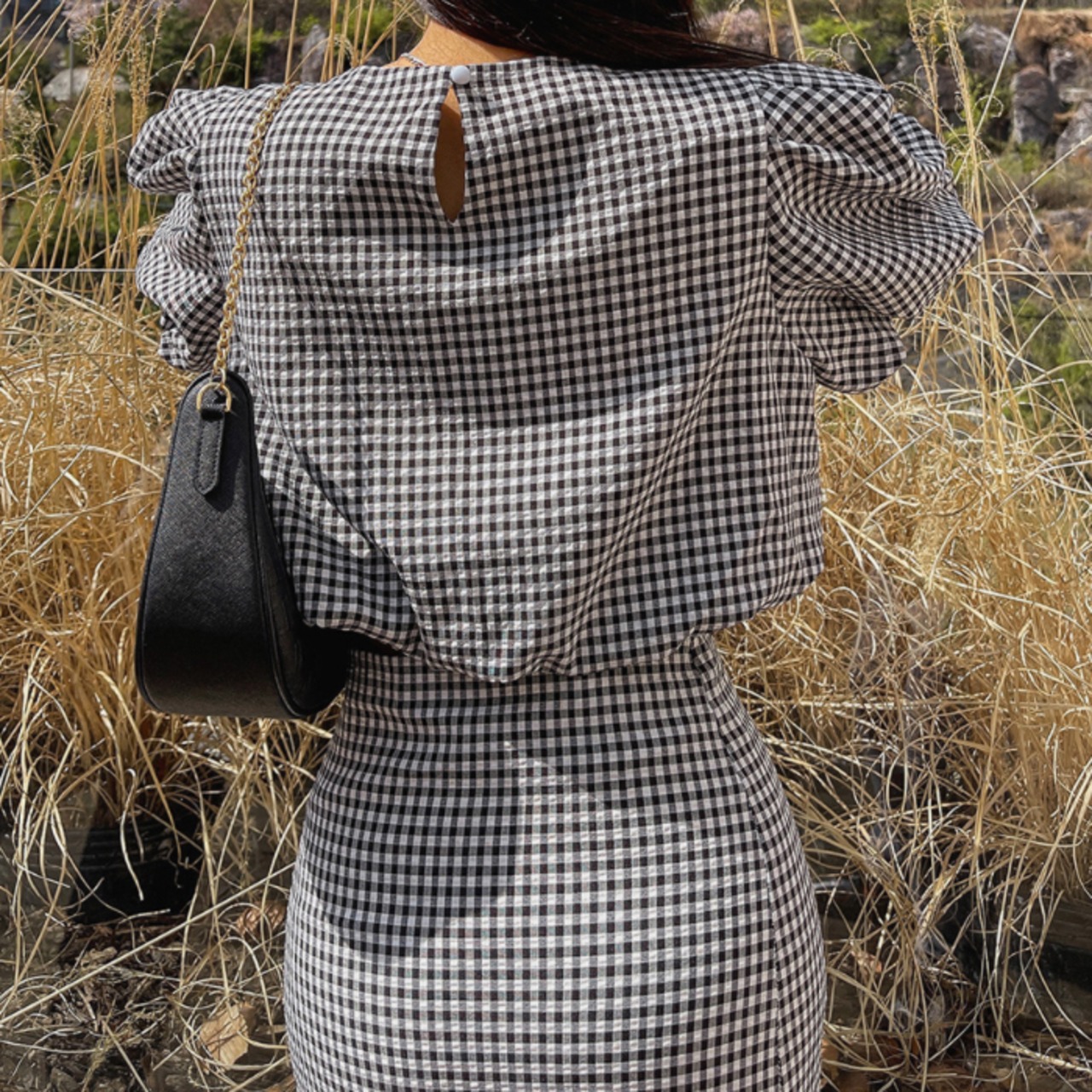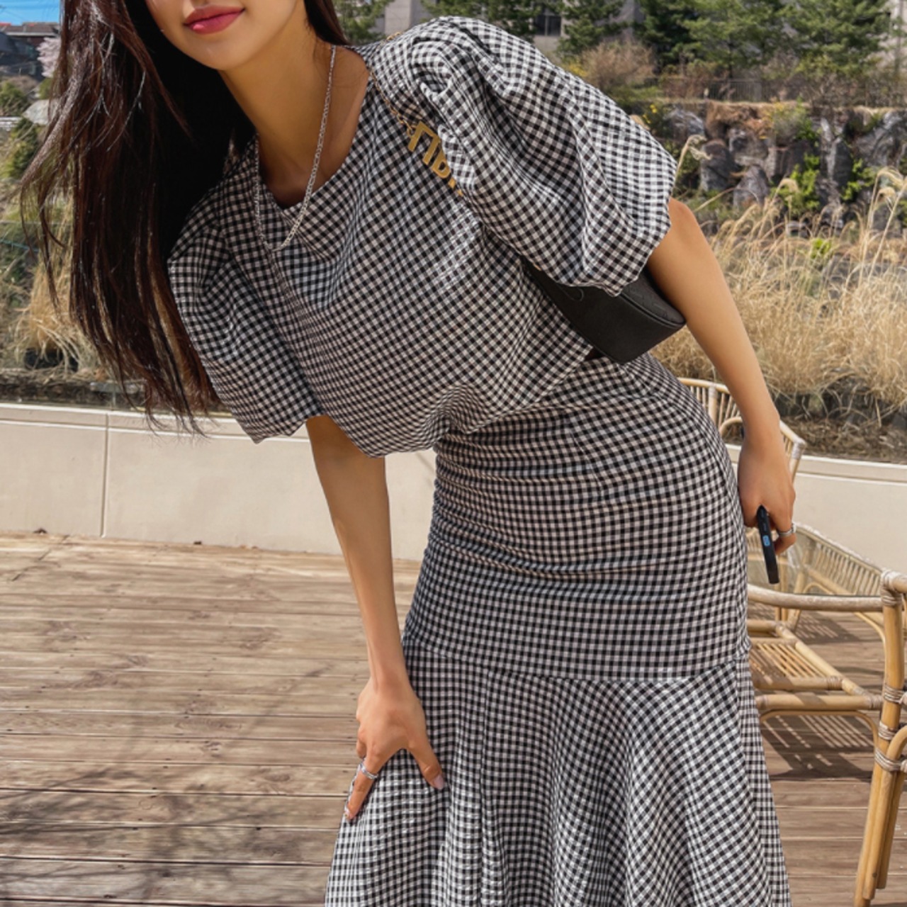ギンガムチェック柄ロングツーピースセット [gg-1495]