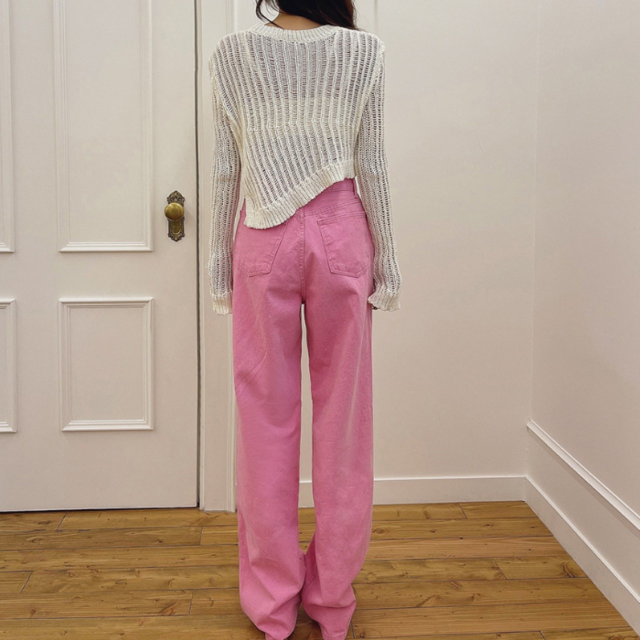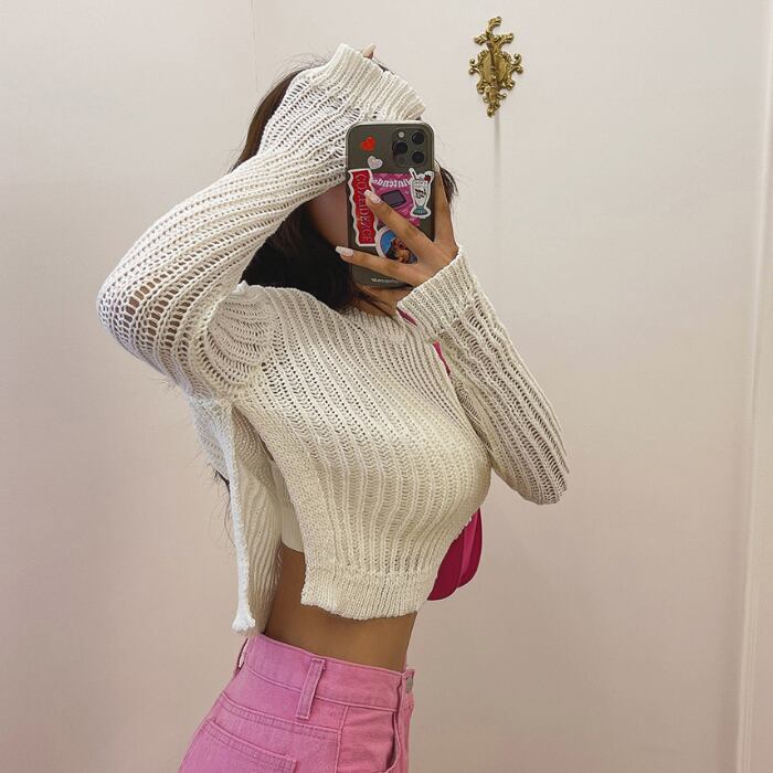 ディープスリット クロップド丈 ネット ニット [gg-1496]