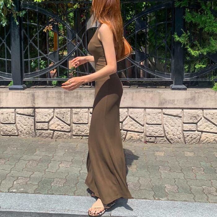 セクシー ホルターネック ロング リブ ワンピース [gg-1497]