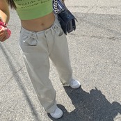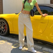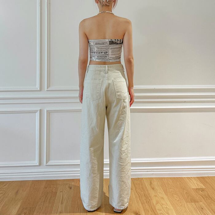 ウエスト調節可能 ボタン ワイドデニムパンツ [gg-1498]