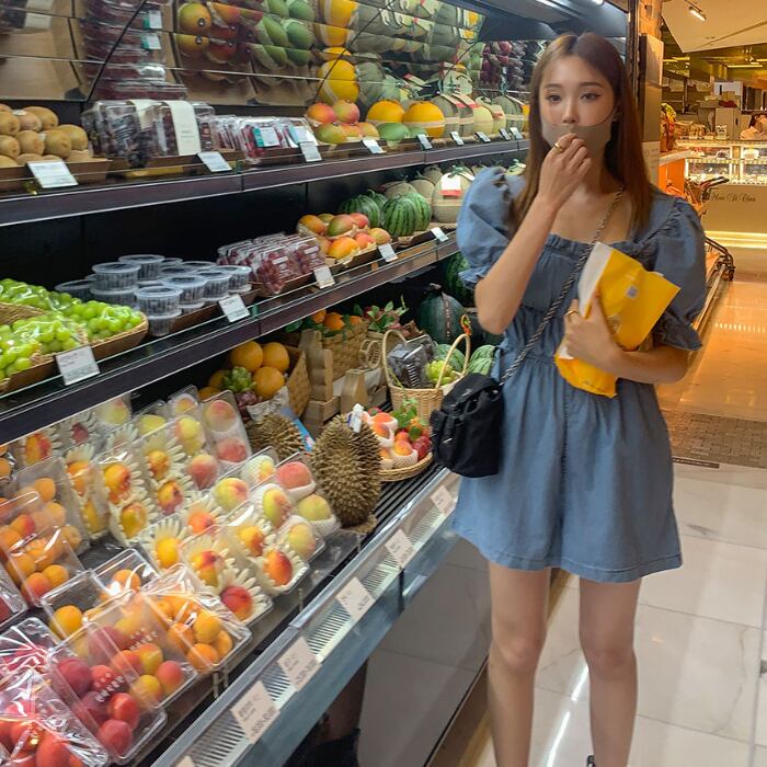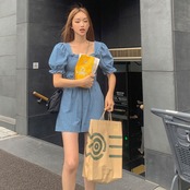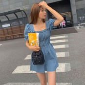 シャーリング デニム ミニ ジャンプスーツ [gg-1500]