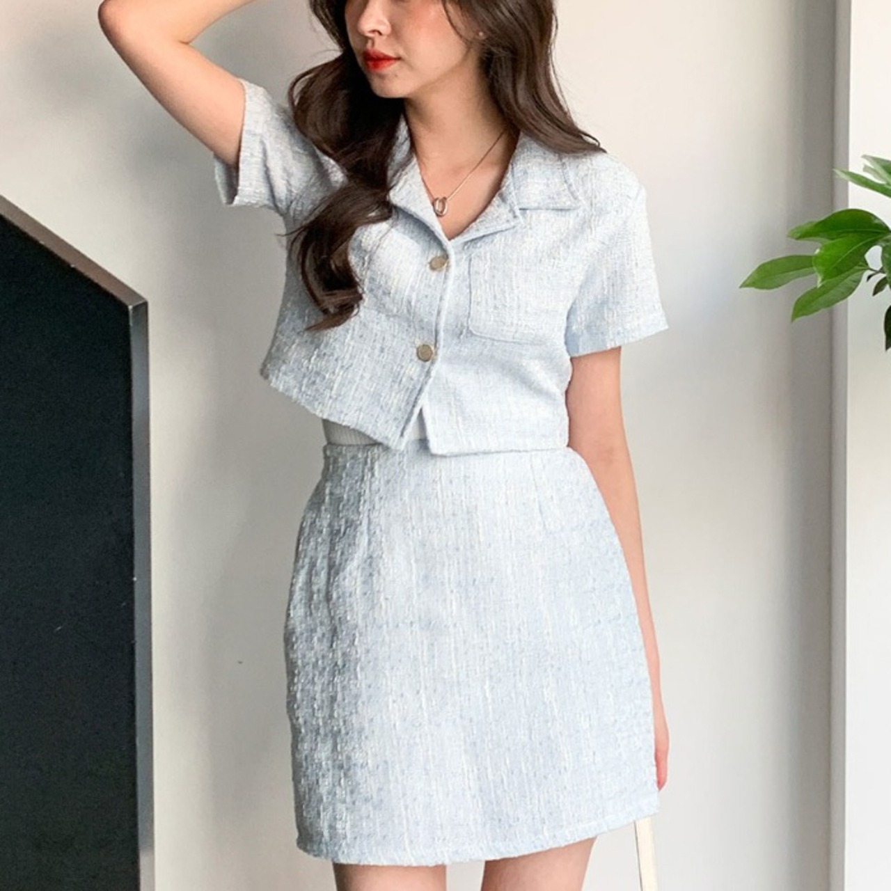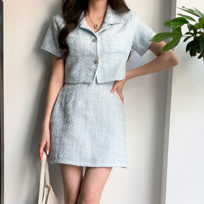 クロップド丈 ジャケット×ミニスカート ツイード [gg-1520]