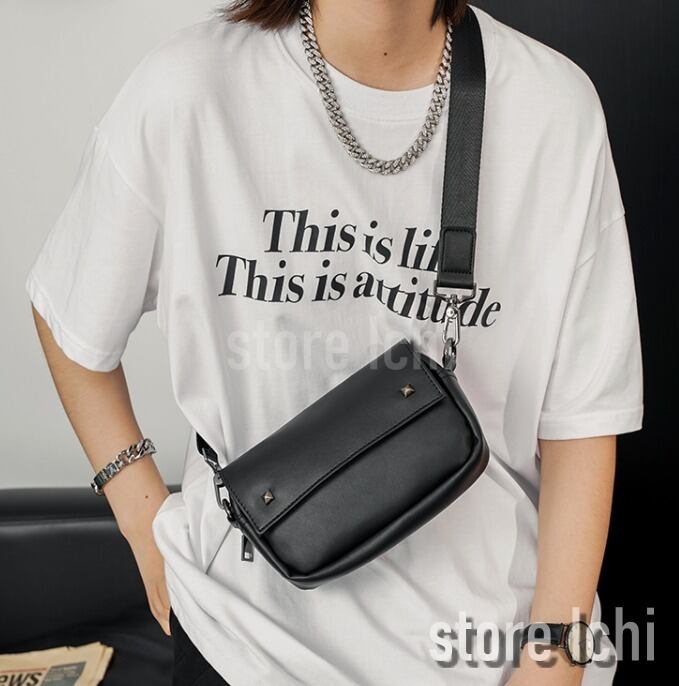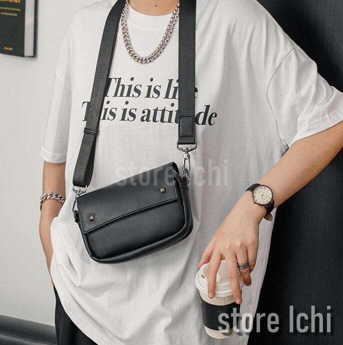 メンズ ミニショルダー ポシェット スタッズ 無地 PU レザー [gg-1530]