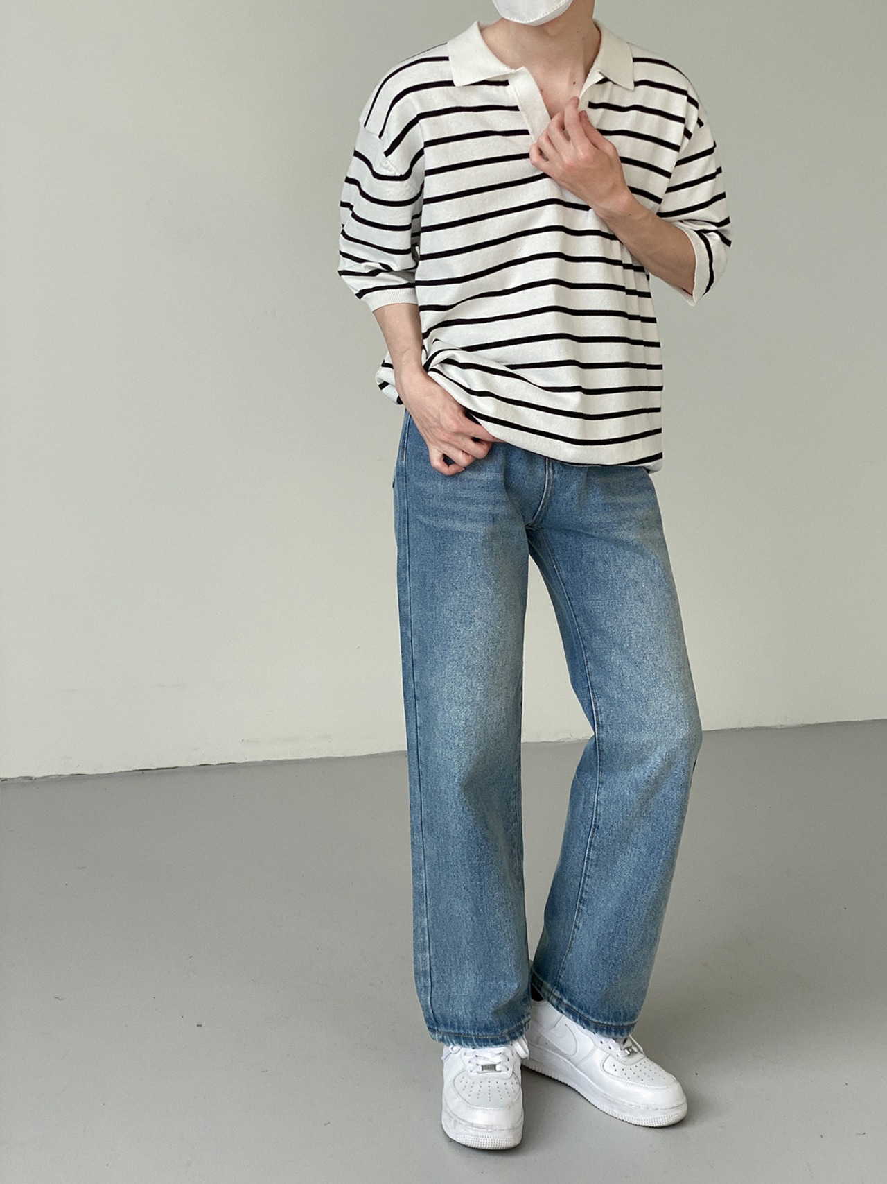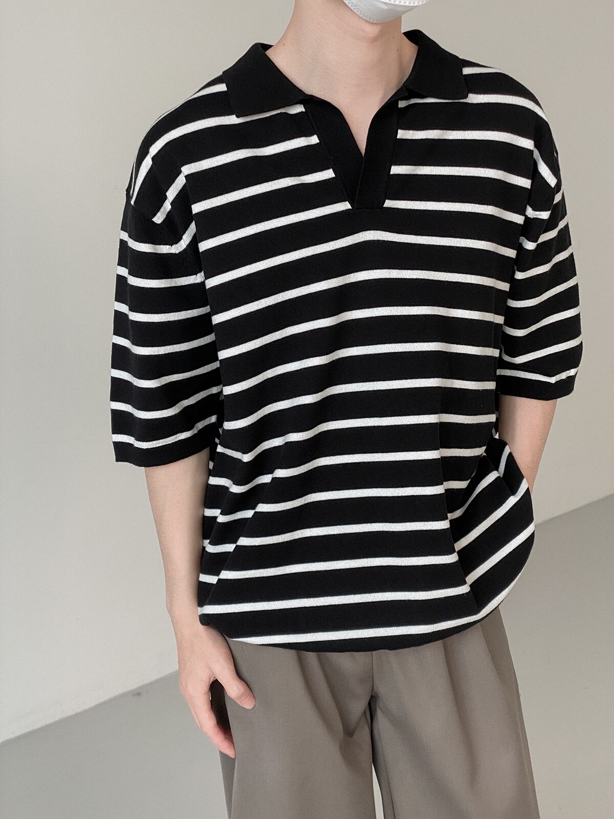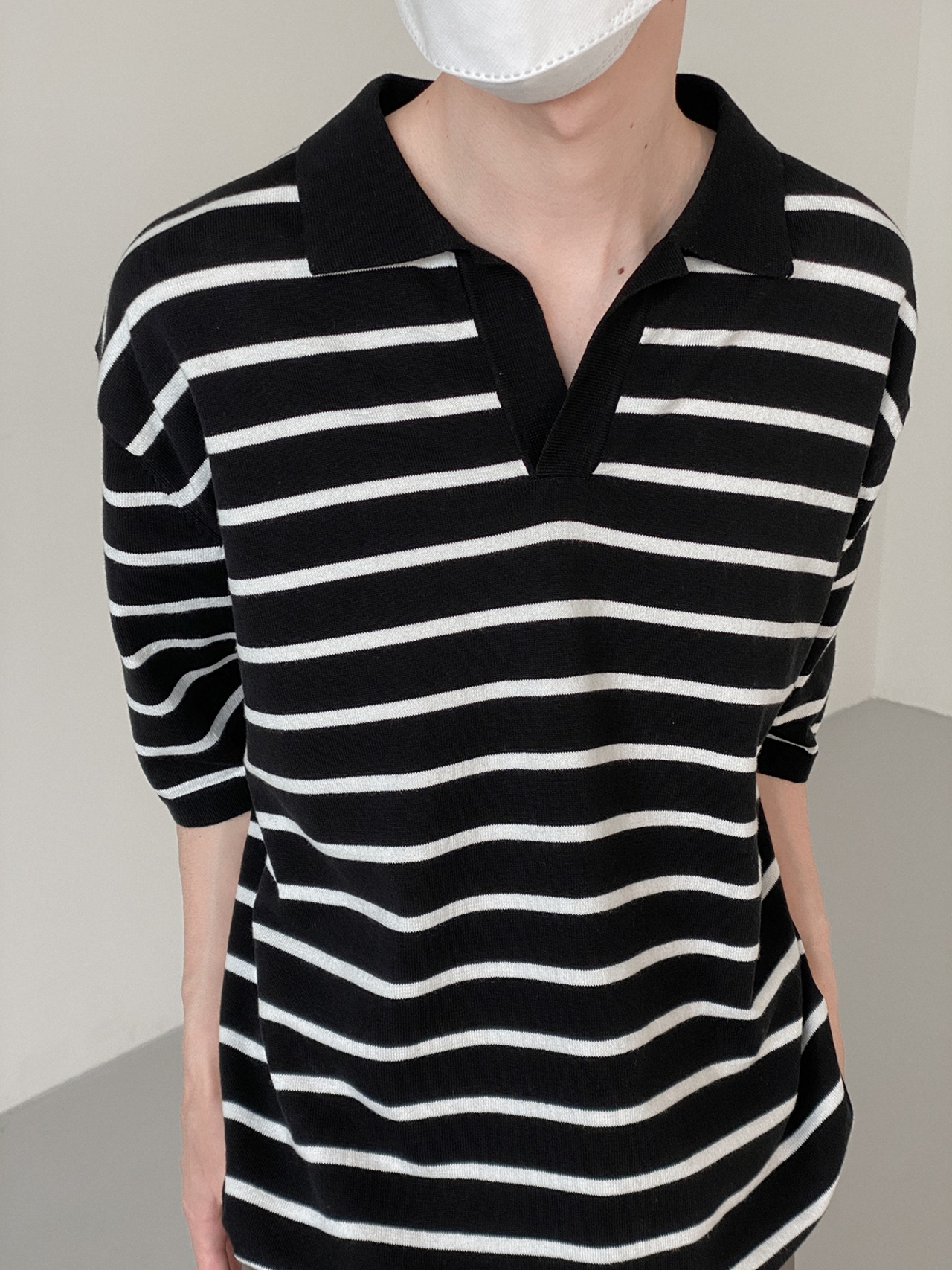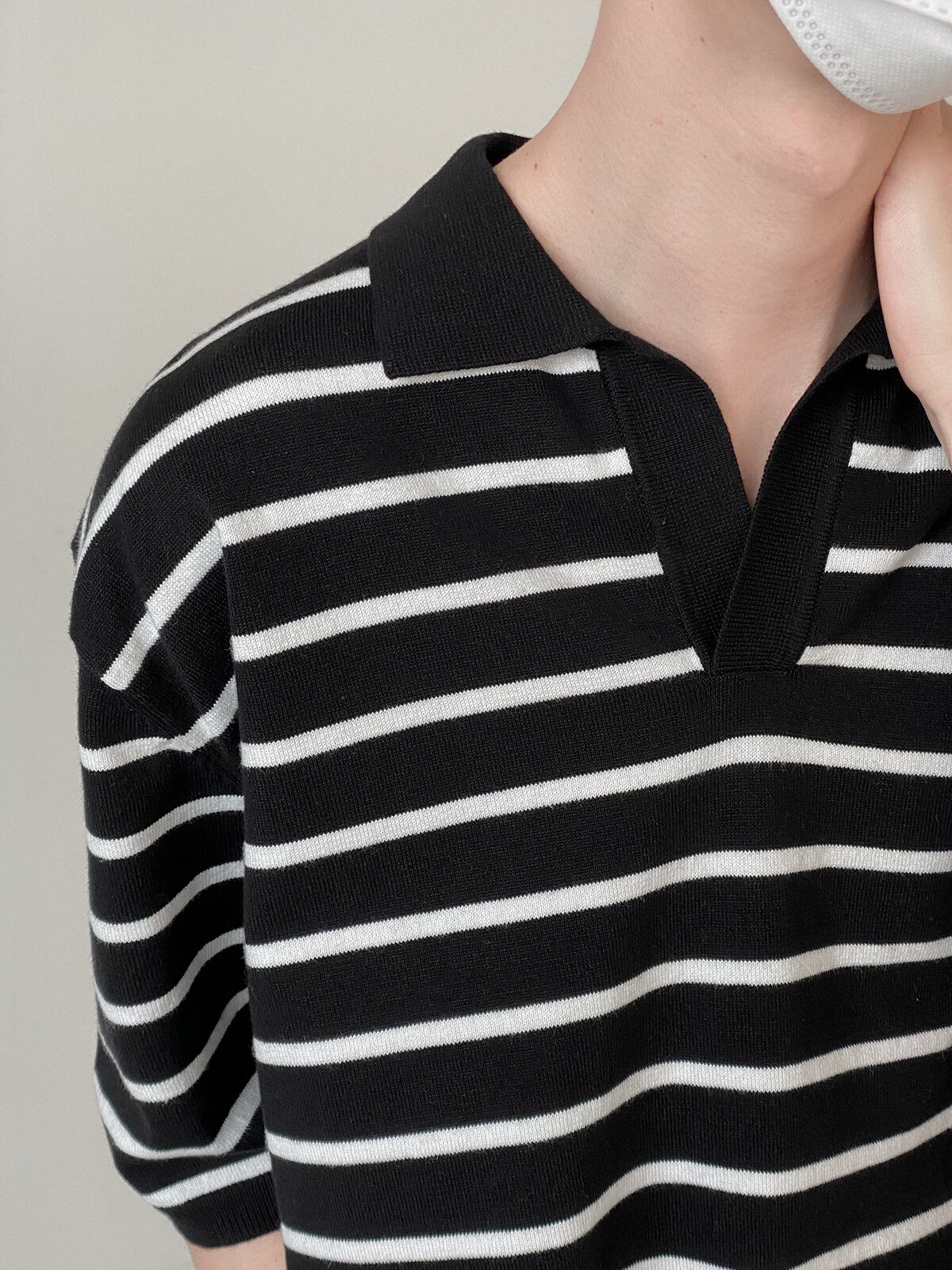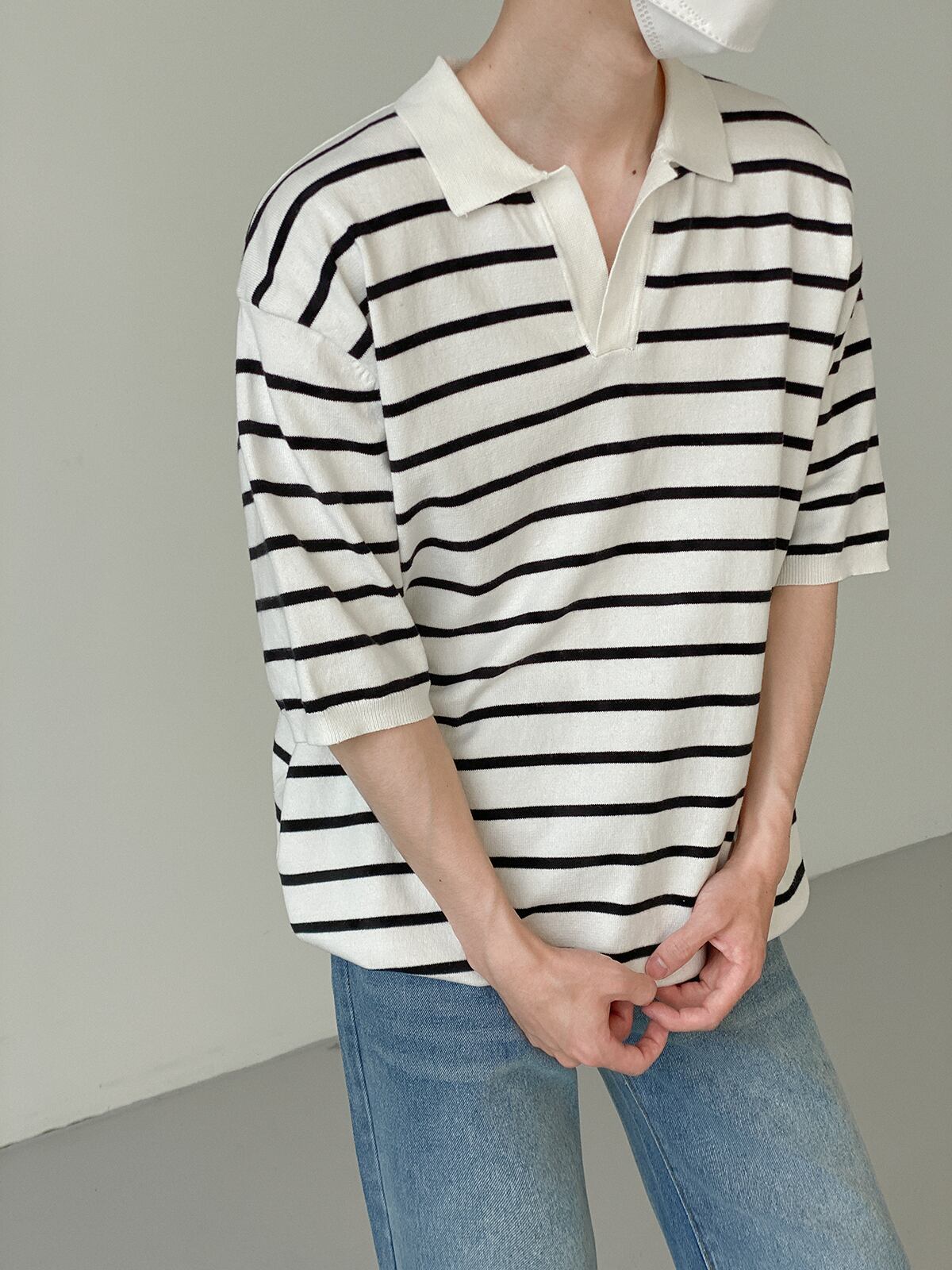 スキッパー ボーダー サマーニット メンズ 韓国 [gg-1551]