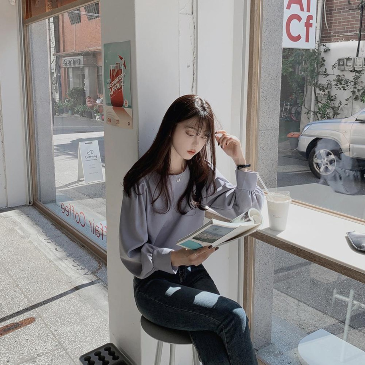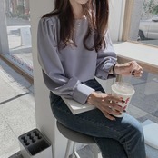 ラウンドネック デイリー ブラウス オフィス カジュアル [gg-1555]