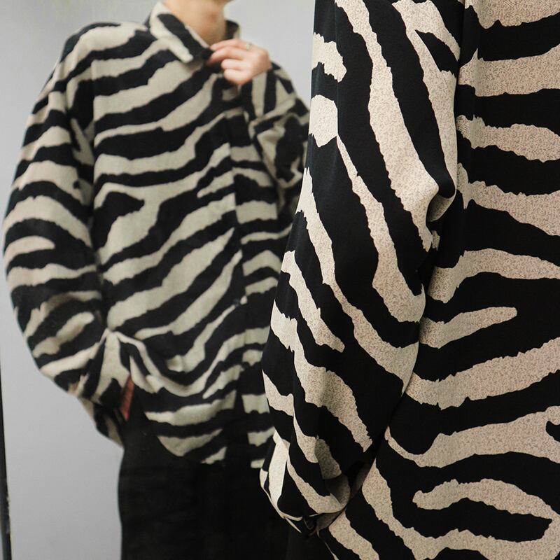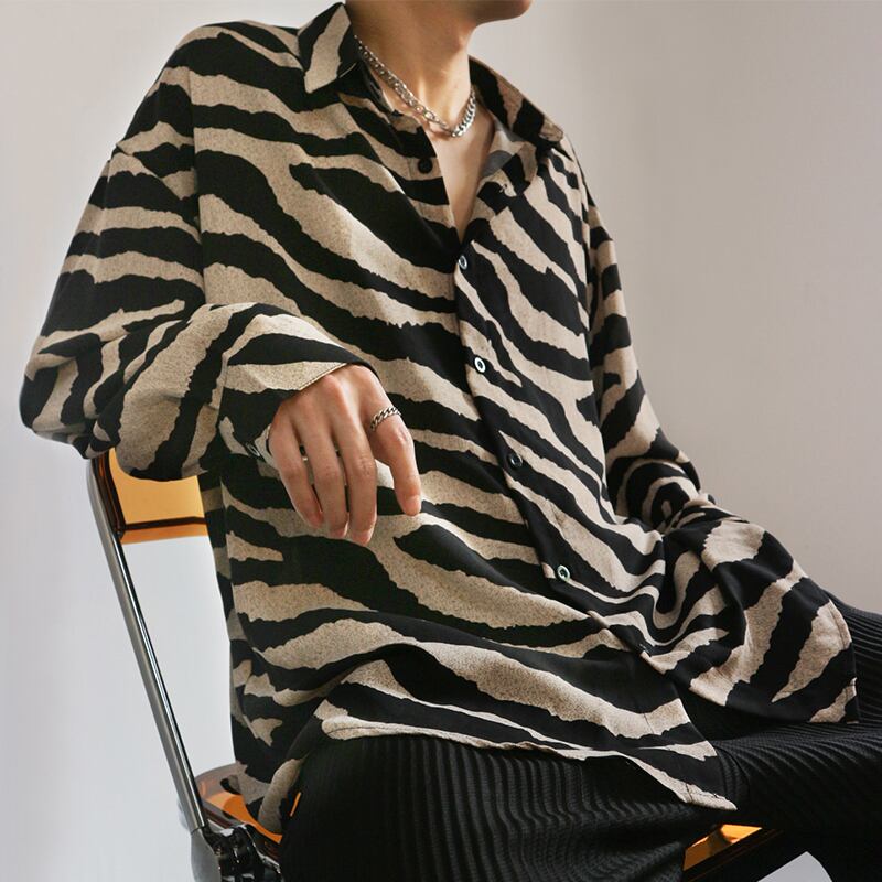 メンズ レトロ 総柄 ゼブラ オープン カラー シャツ 長袖シャツ [gg-1556]