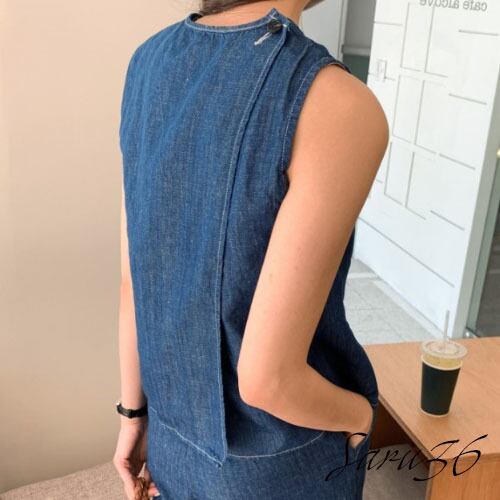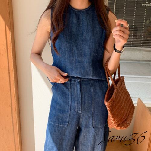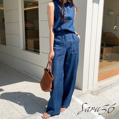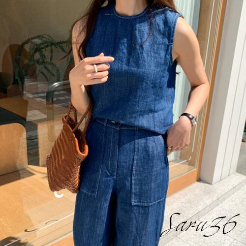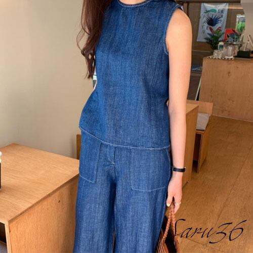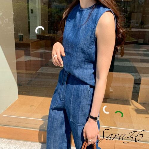 オシャレ リネン デニムセットアップ [gg-1565]
