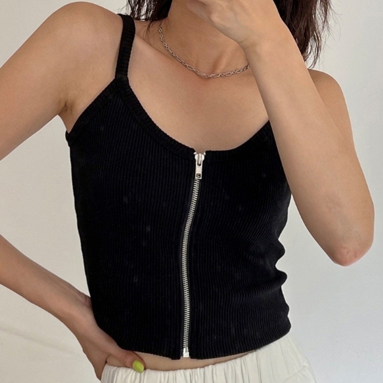 ゴルジジッパー クロップ ノースリーブ Tシャツ [gg-1580]