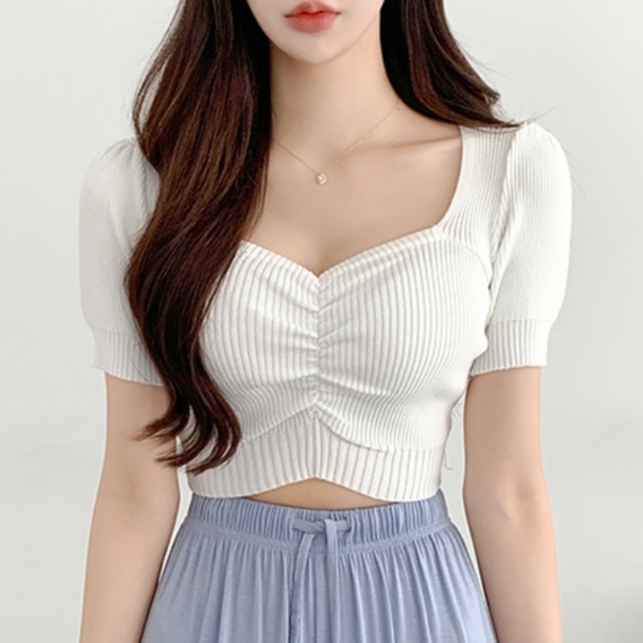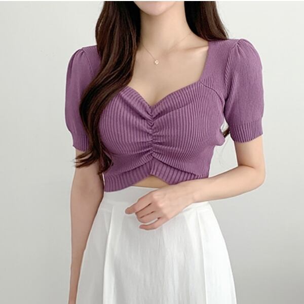 サマー クロップ ニット 半袖 Tシャツ [gg-1584]