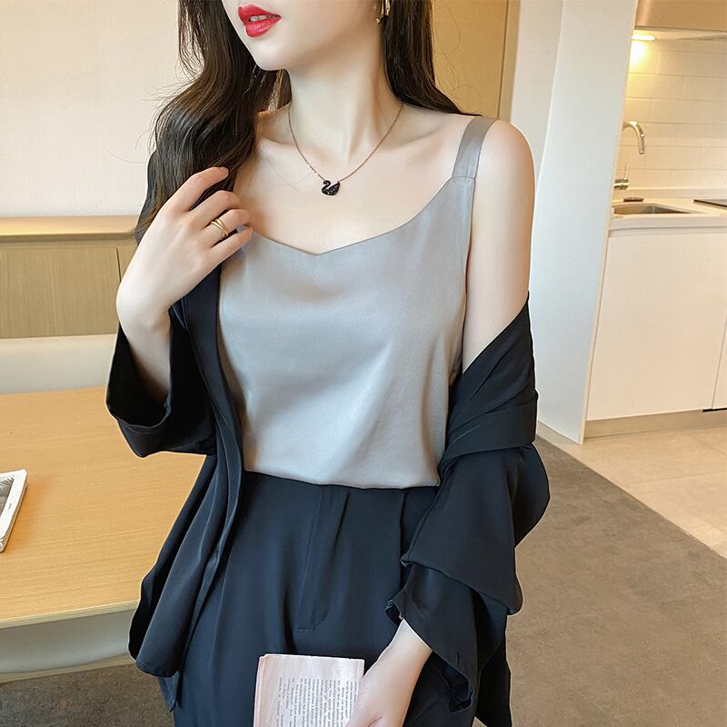 キャミソール インナー サテン風 プルオーバー Vネック 韓国 [gg-1587]