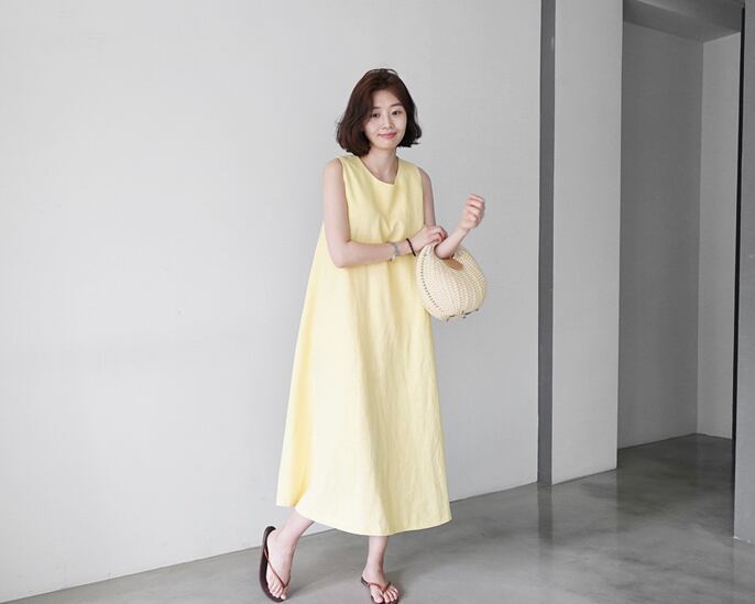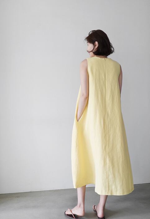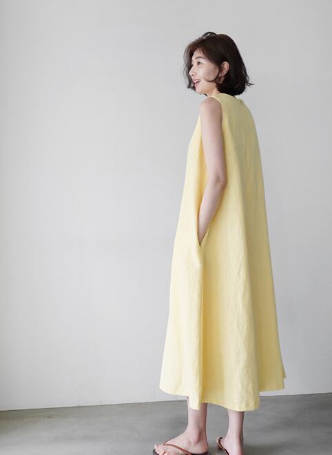 ワンピース 麻 シンプル Aライン ゆったり 涼し気 体型カバー [gg-1596]