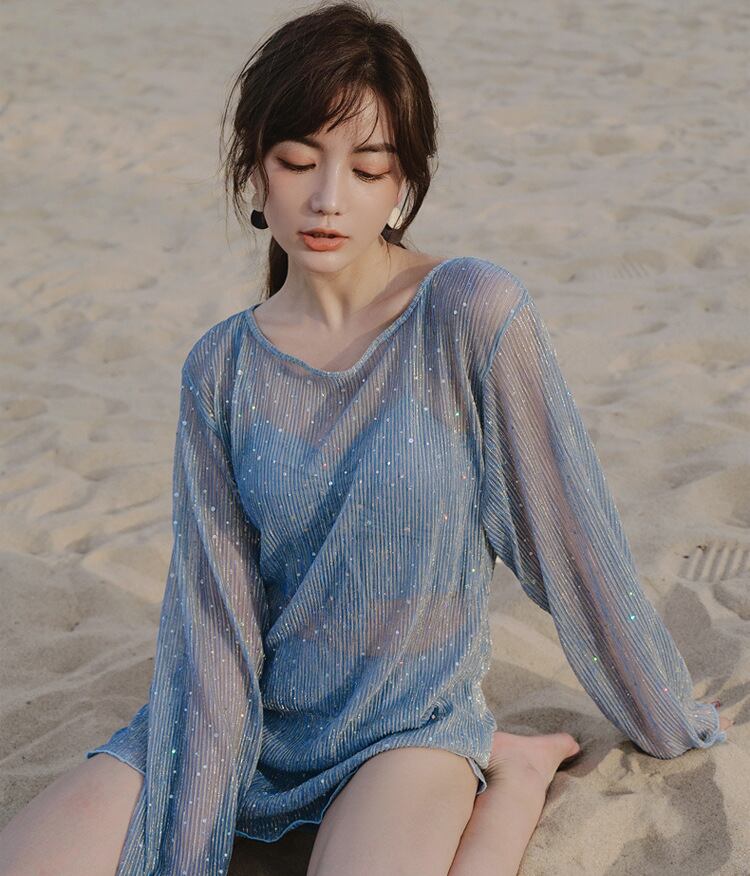 水着 3点セット 長袖 Tシャツ タンキニ フリル ルーシュド [gg-1601]