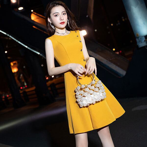 イブニングドレス ショート ノースリーブ Uネック Aライン [gg-1626]