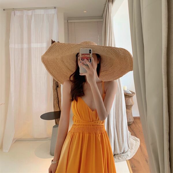ハイウエスト ノースリーブ ロングワンピース リゾート 夏 [gg-1632]