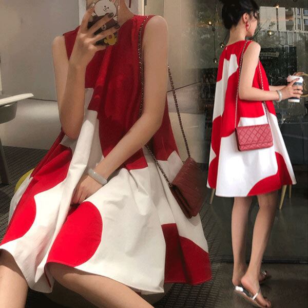 ラウンドネック ノースリーブ ミドル丈 ワンピース マタニティ [gg-1633]
