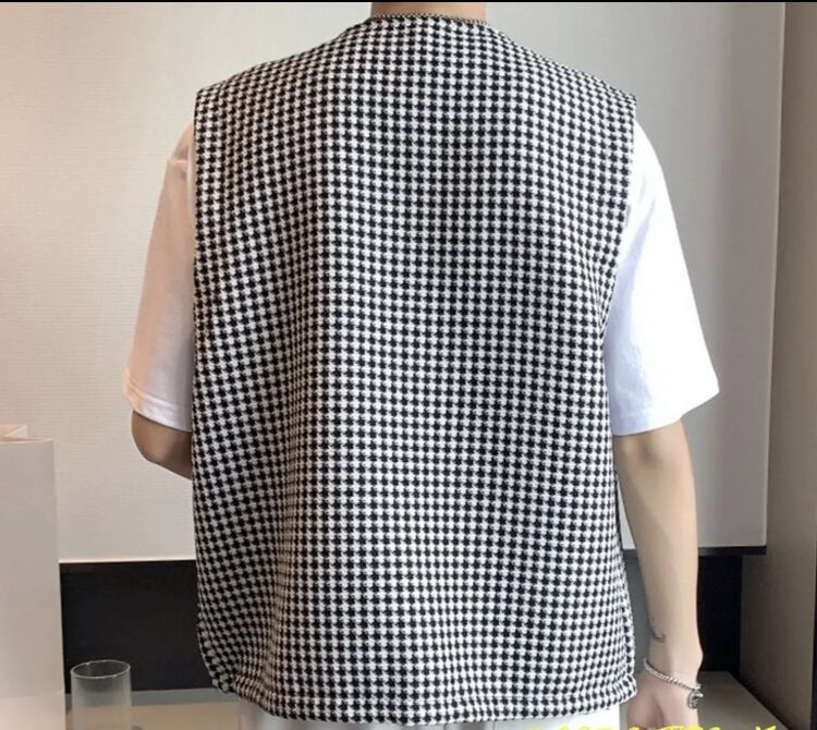 千鳥格子 ベスト ジレ カジュアル おしゃれ 韓国 [gg-1643]