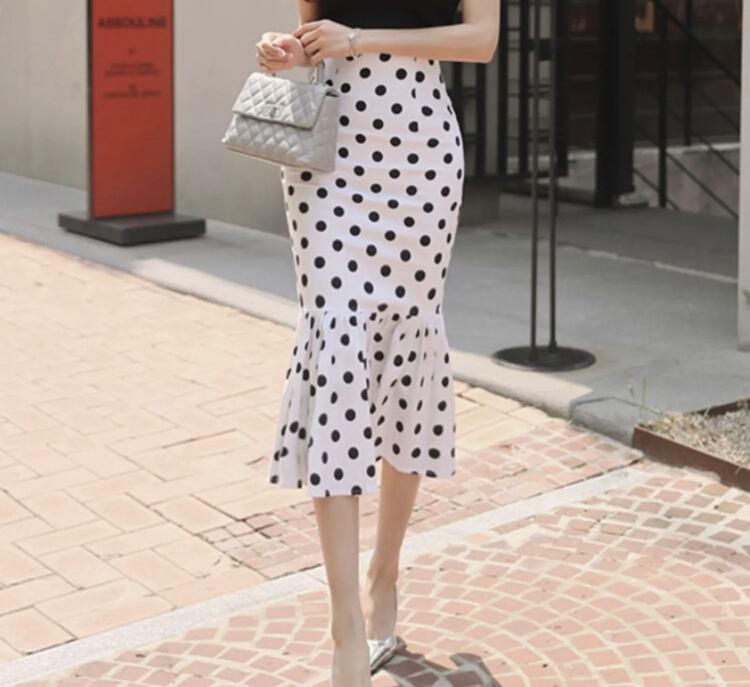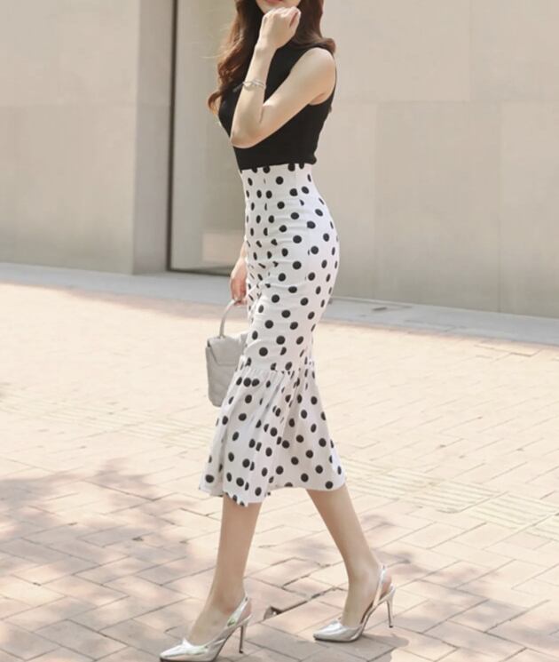 マーメイドスカート ミディ丈 水玉 ドット バイカラー [gg-1644]