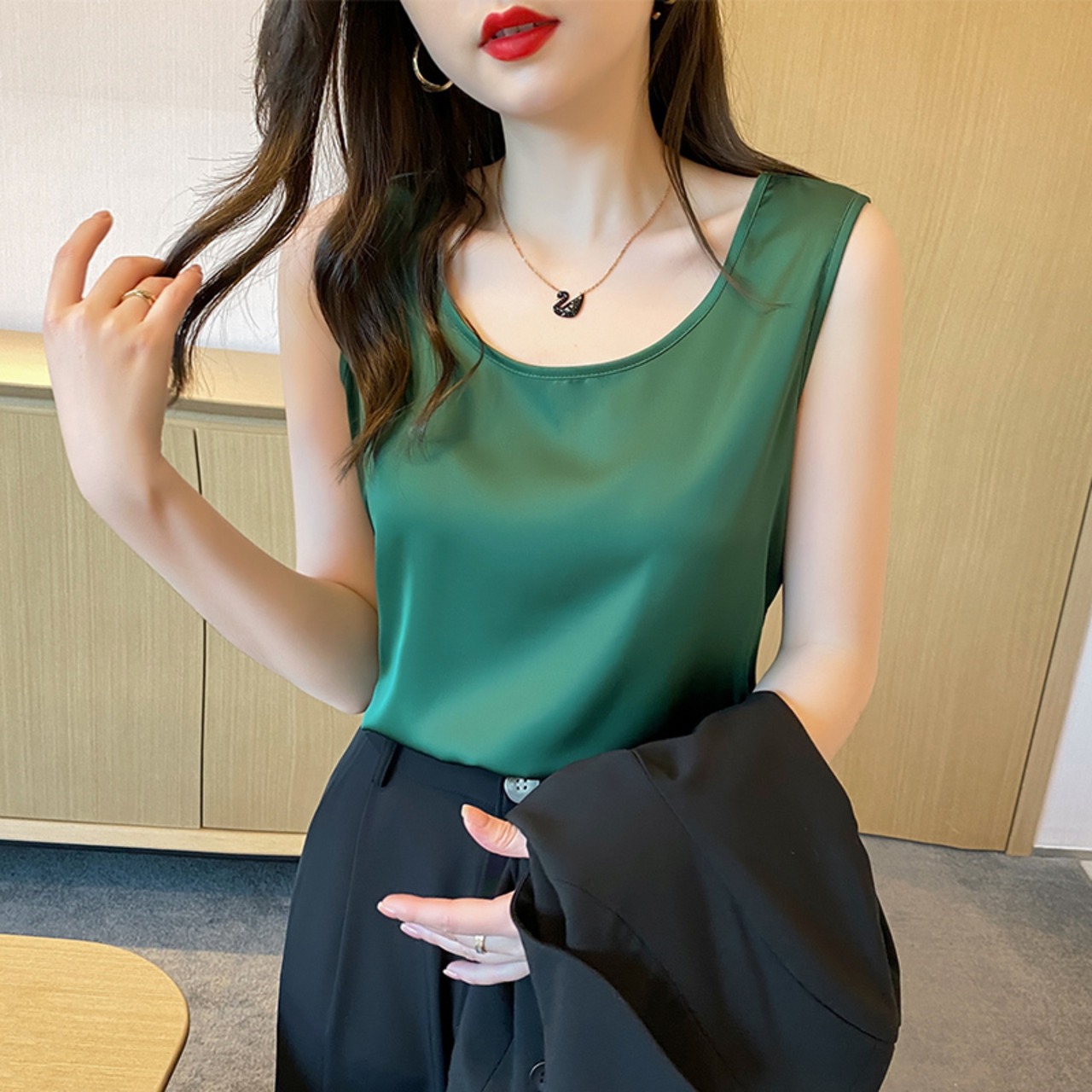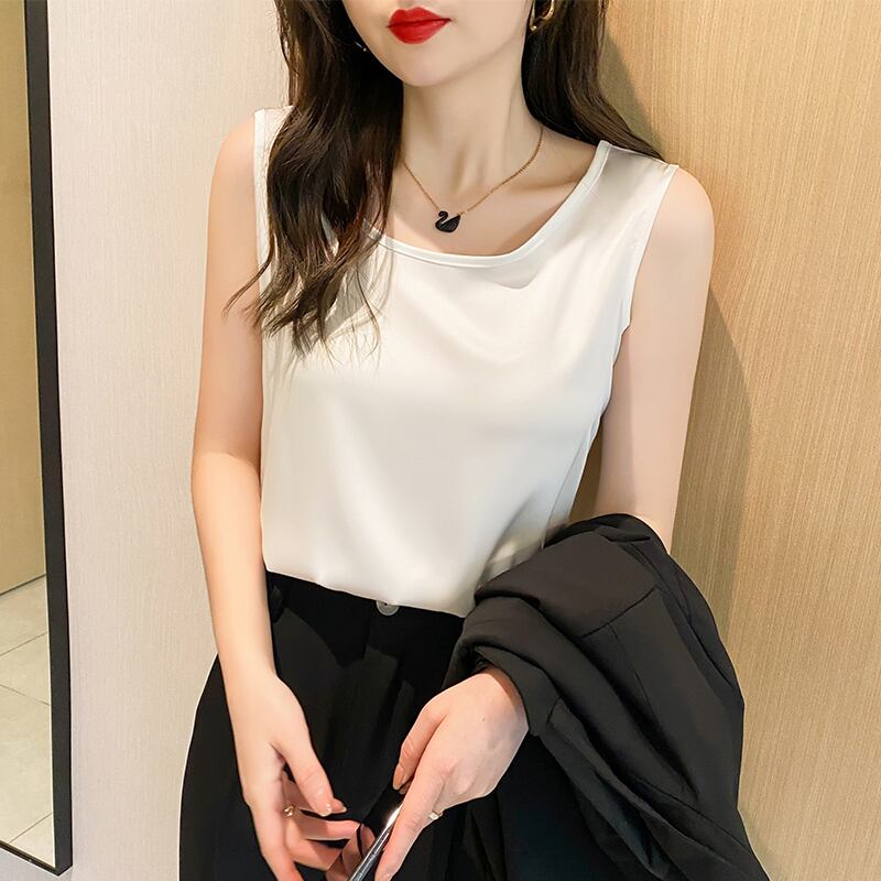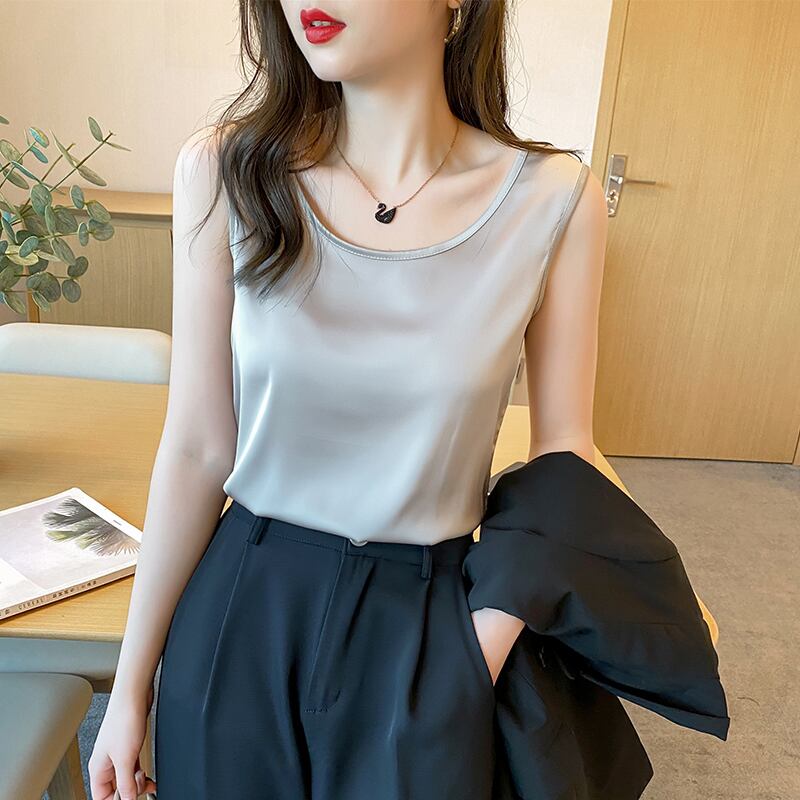 ノースリーブ サテン風 キャミソール インナー エレガント 韓国 [gg-1661]