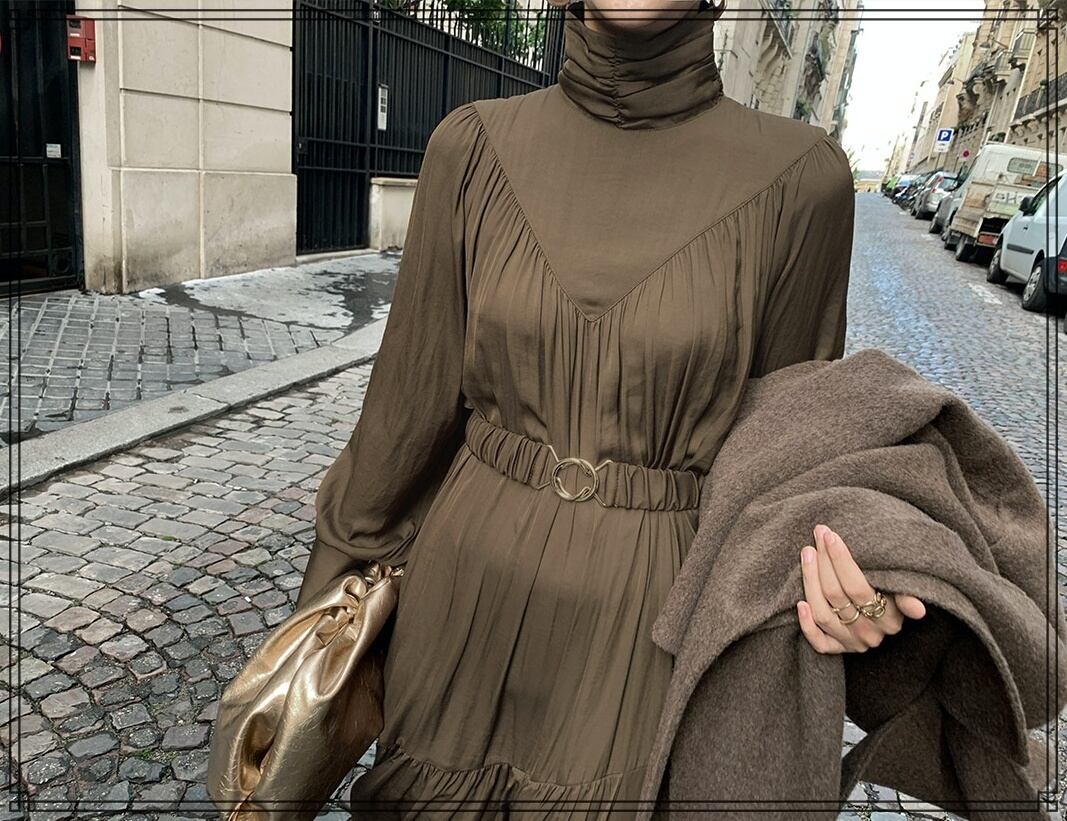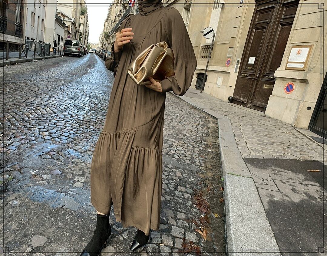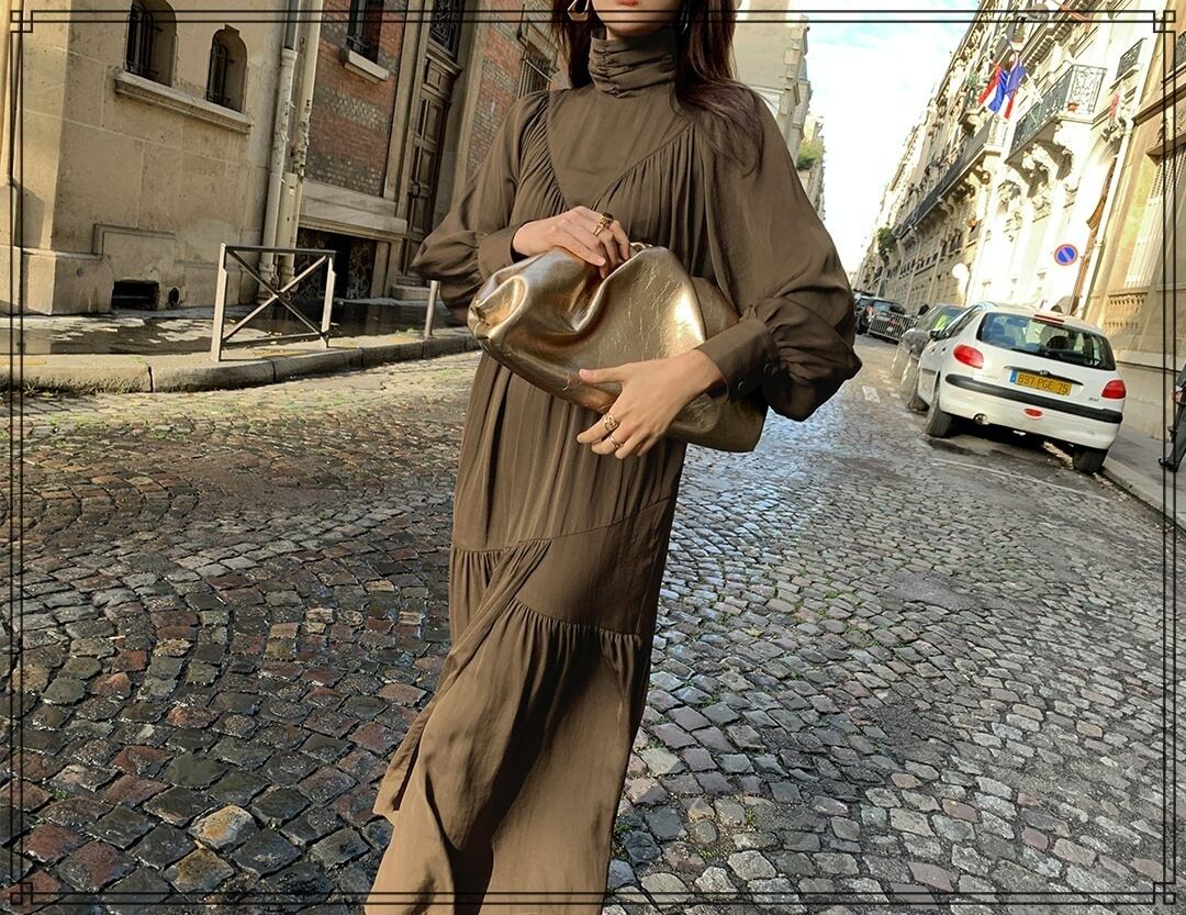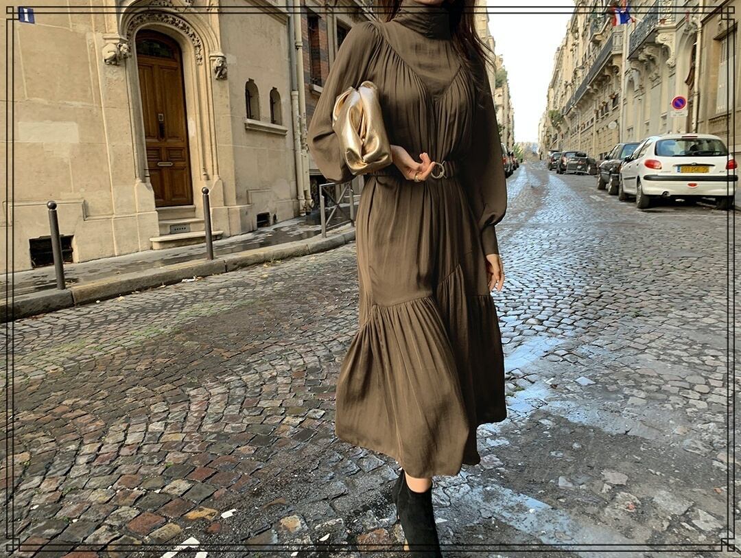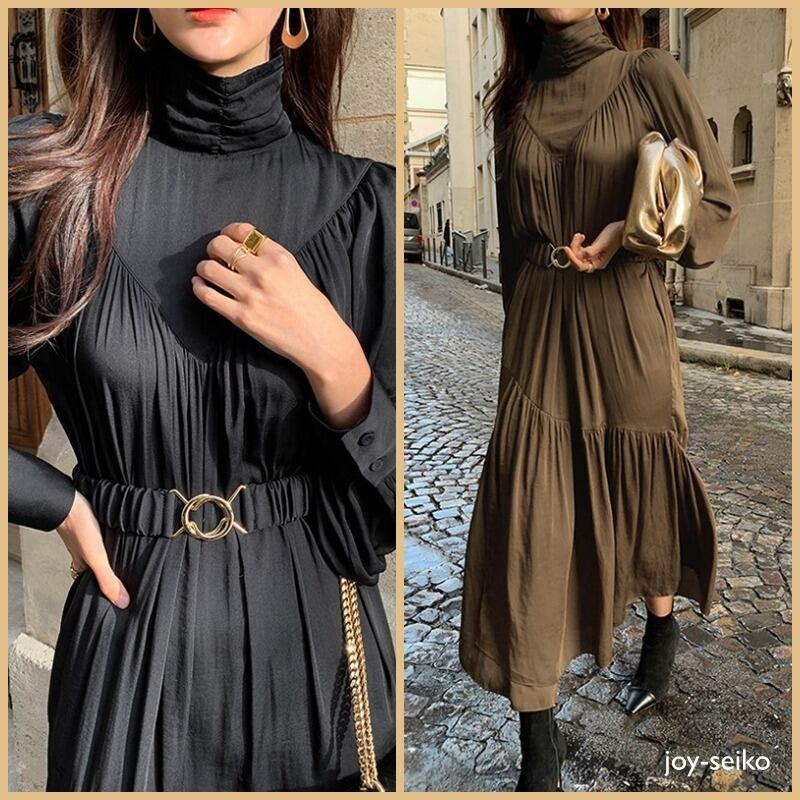 韓国ファッション ワンピース エレガント 光沢 ボリューム袖 [gg-1685]