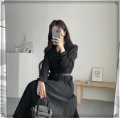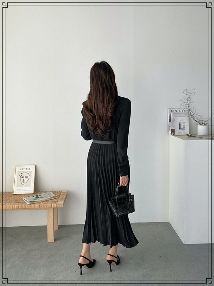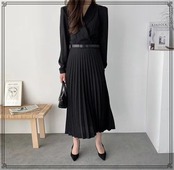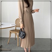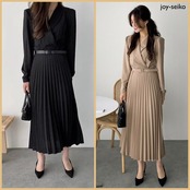 韓国ファッション シャツワンピース プリーツ 着痩せ [gg-1687]