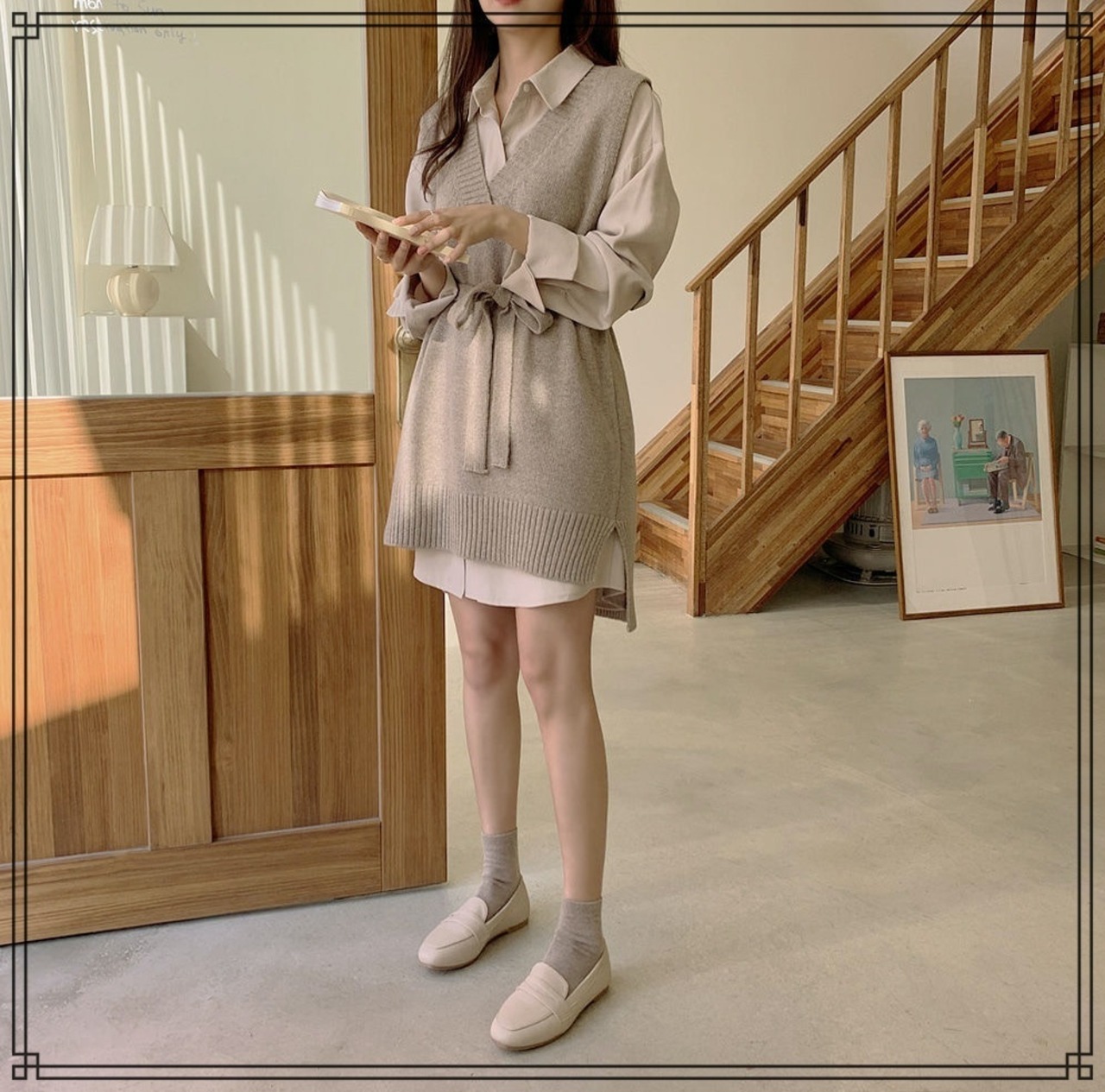 韓国ファッション 重ね着 ニットベスト トレンド ワンピース [gg-1688]