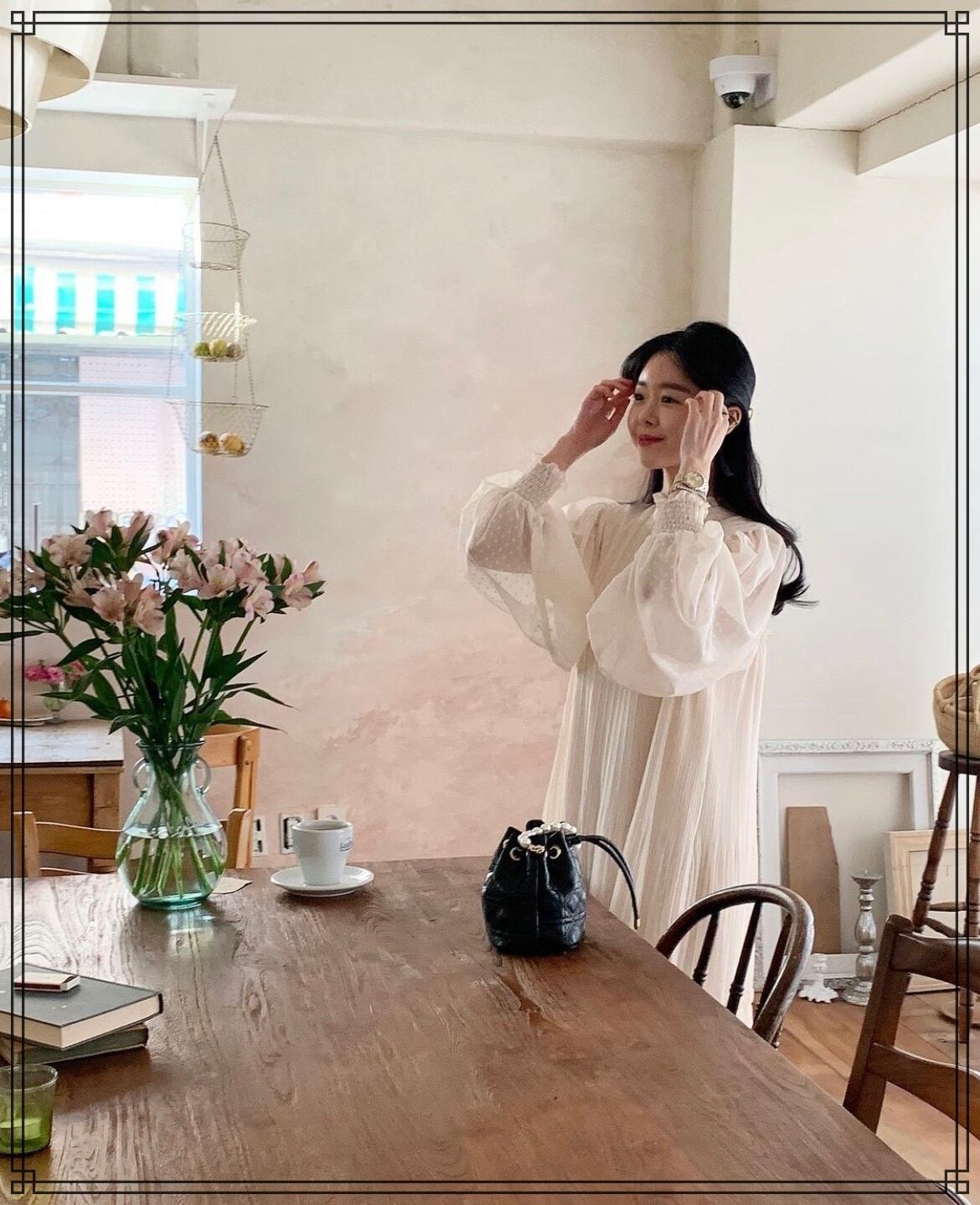 韓国ファッション ワンピース ドット シアー 謝恩会 フレア [gg-1689]