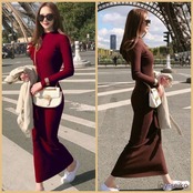 韓国ファッション ロング セーター スリム ニット ワンピ [gg-1694]