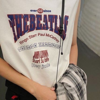 韓国 タンクトップ ノースリーブ 古着風 ロゴ 全2色 [gg-1712]