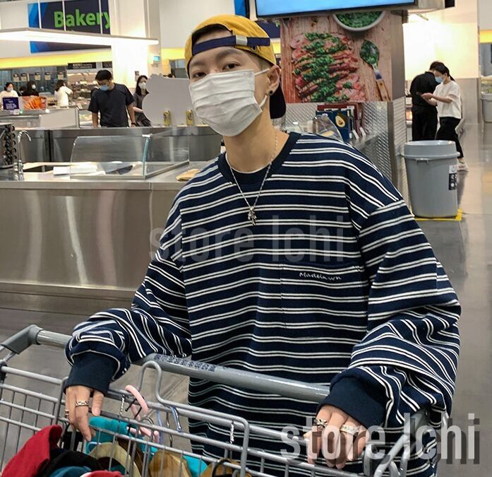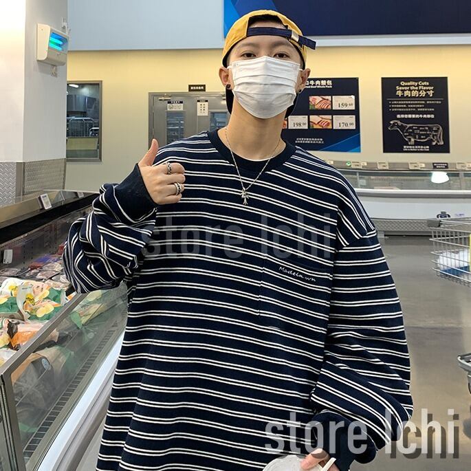 メンズ ボーダーロンT カットソー ロゴ クルーネック 長袖 [gg-1713]