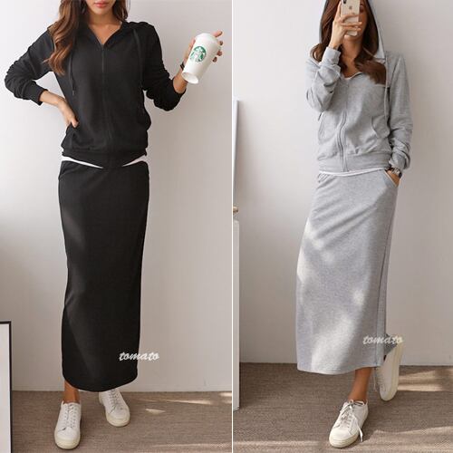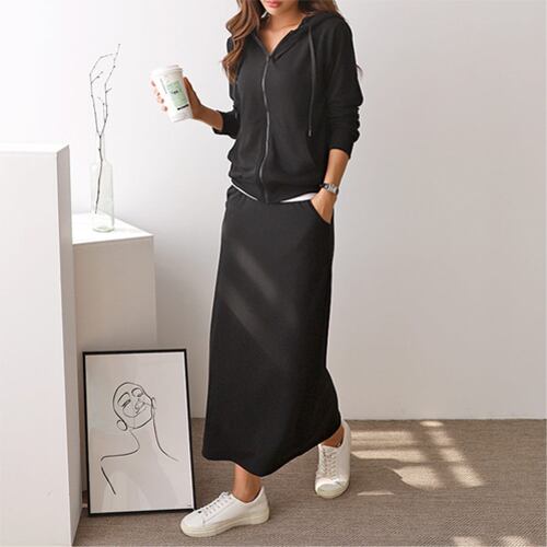 春夏向き フードジップアップ ロングスカートセット [gg-1718]