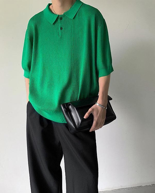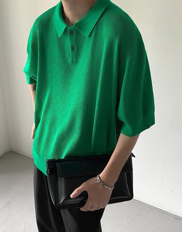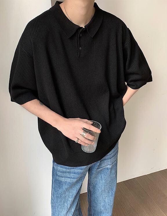 オーバーサイズ サマーニット ポロシャツ 無地 [gg-1721]