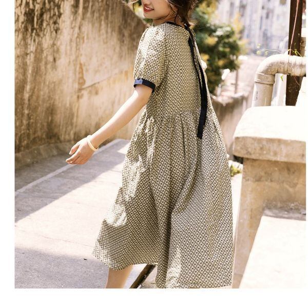 ワンピース 半袖 チェック柄 フレア バックリボン [gg-1748]