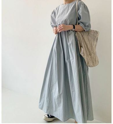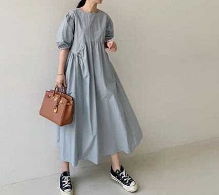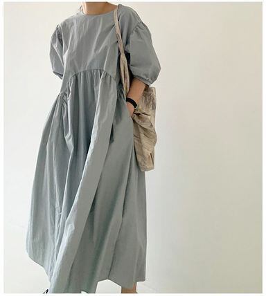 レアワンピース パフスリーブ カジュアル ロング丈 韓国系 [gg-1759]
