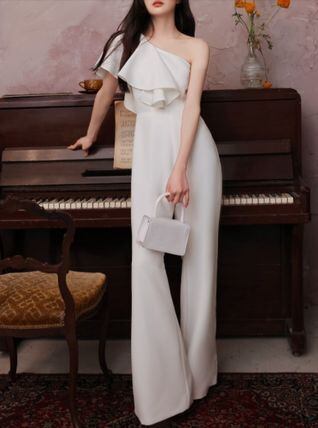 オールインワン ワンショルダー パーティー パンツドレス [gg-1766]