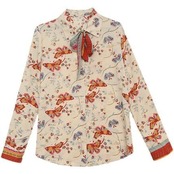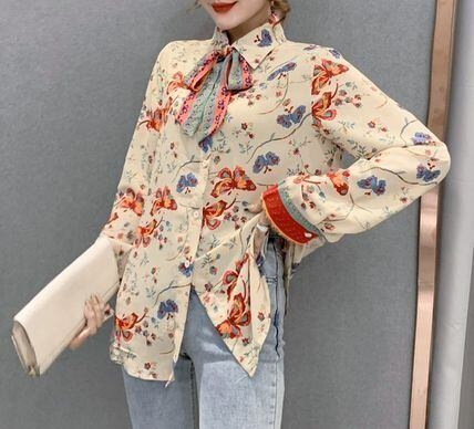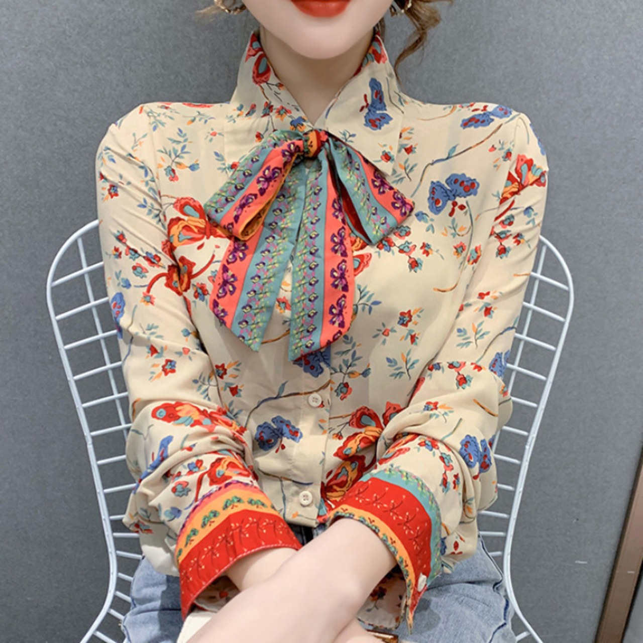花柄 ボウタイ 韓国系デザイン柄 シフォンシャツ ブラウス [gg-1777]