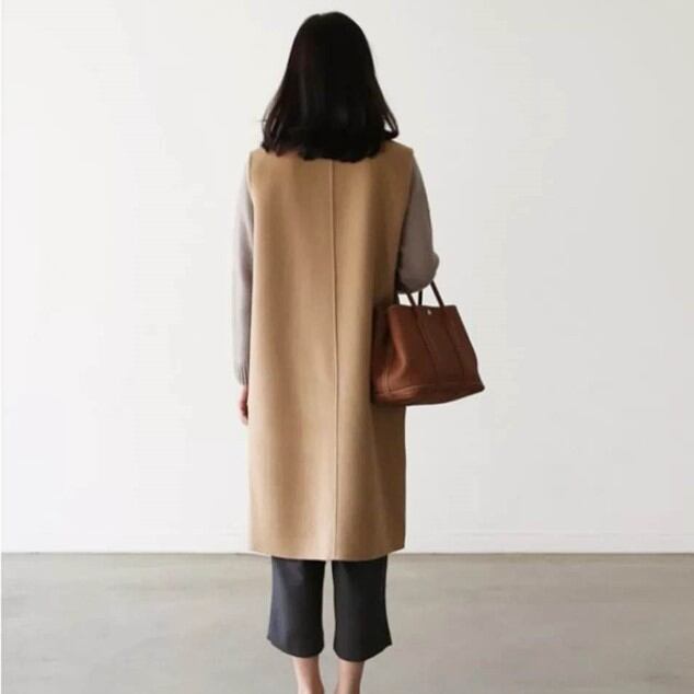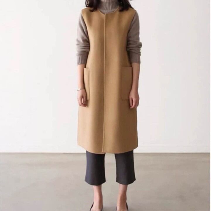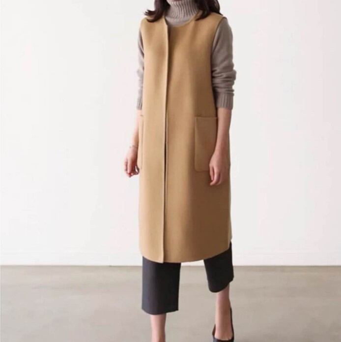 クルーネック ロングベスト ロングジレ ポケットデザイン [gg-1797]