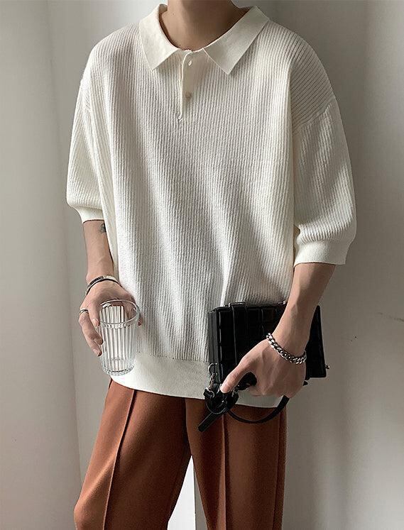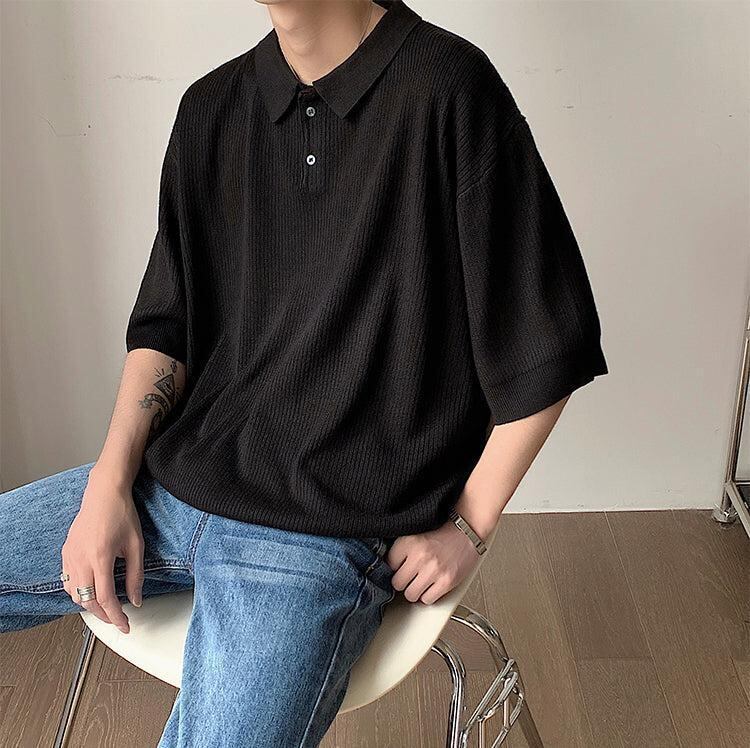 オーバーサイズ サマーニット ポロシャツ 無地 [gg-1824]