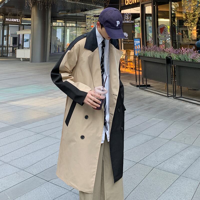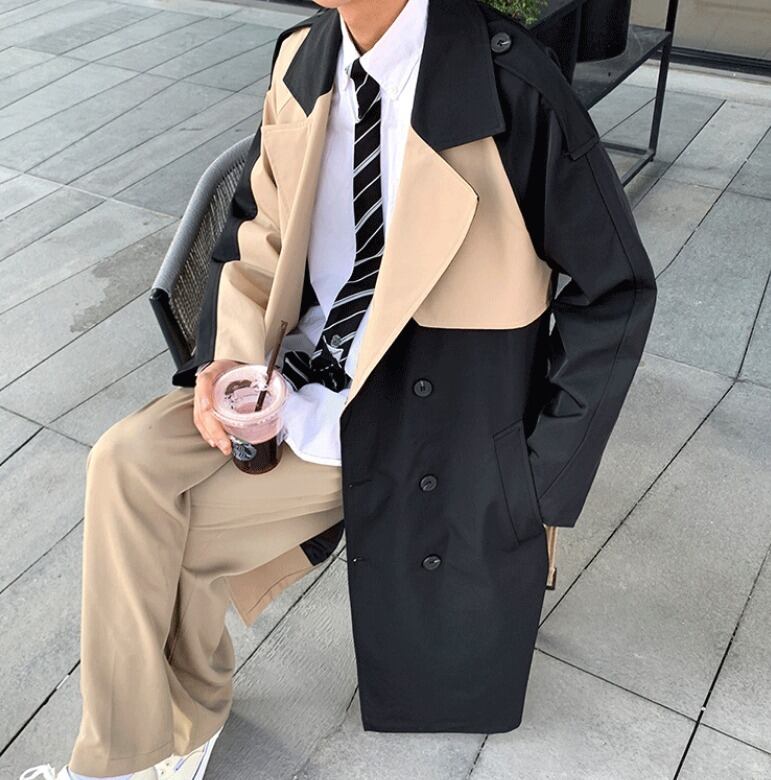 トレンチコート バイカラー ツートン ロング カジュアル 韓国 [gg-1833]