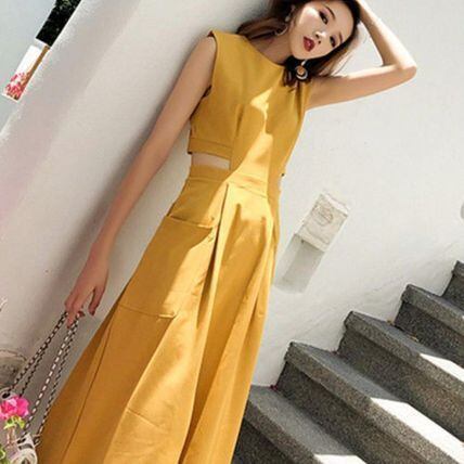 オールインワン ハイウエスト ロング丈 ワンピース 韓国 [gg-1850]