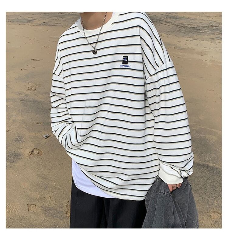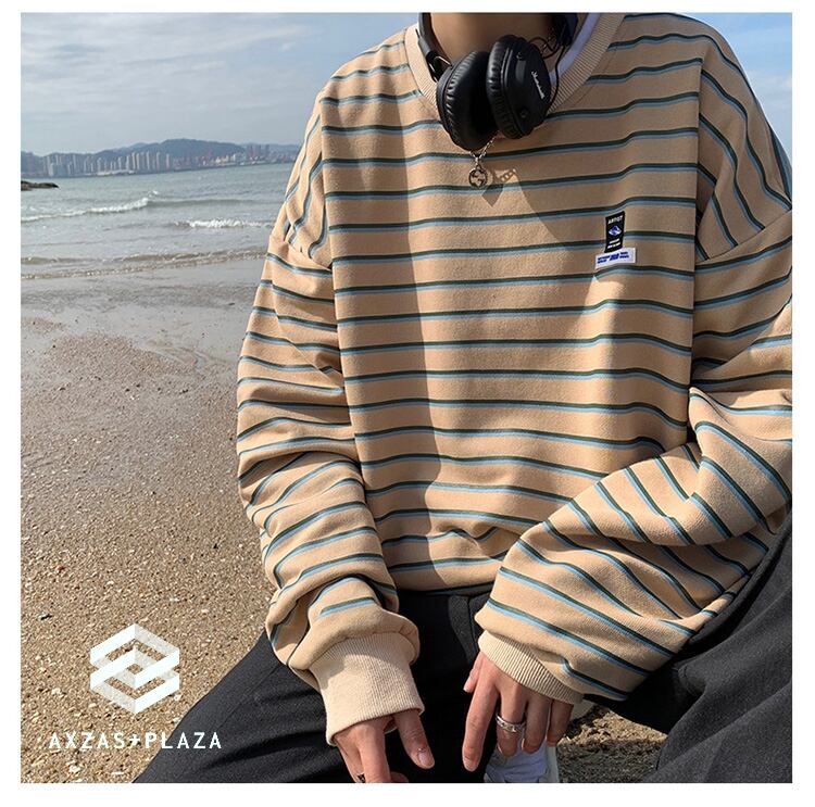 ユニセックス オーバーサイズ ボーダー 長袖Tシャツ [gg-1861]