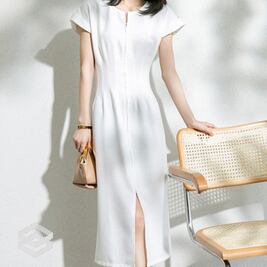 レディス スリット ジッパーワンピース きれいめ [gg-1879]